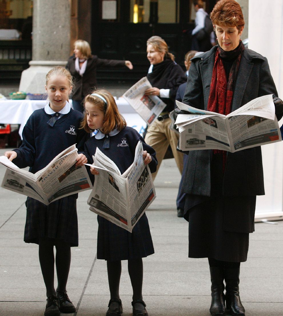 2008年9月,在一場號召培養孩子識讀能力的活動上,兩個小女孩拿著報紙有模有樣地學起了隔壁的大人。