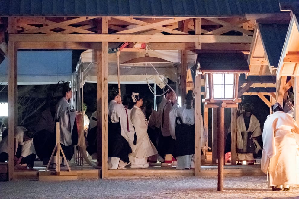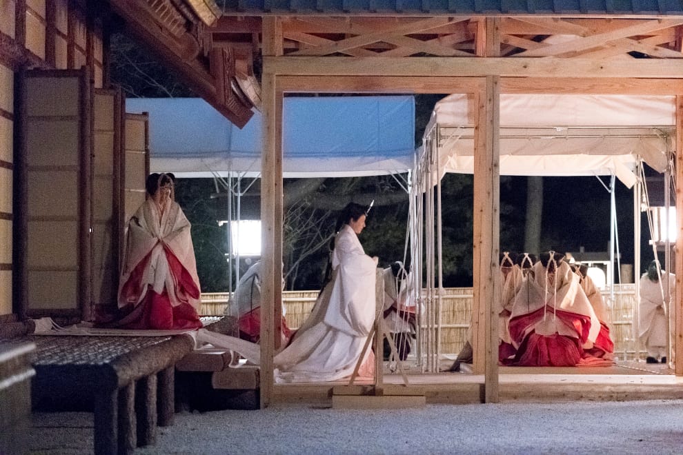 傍晚,身穿「御祭服」的德仁天皇就會抵達東方的悠紀殿。