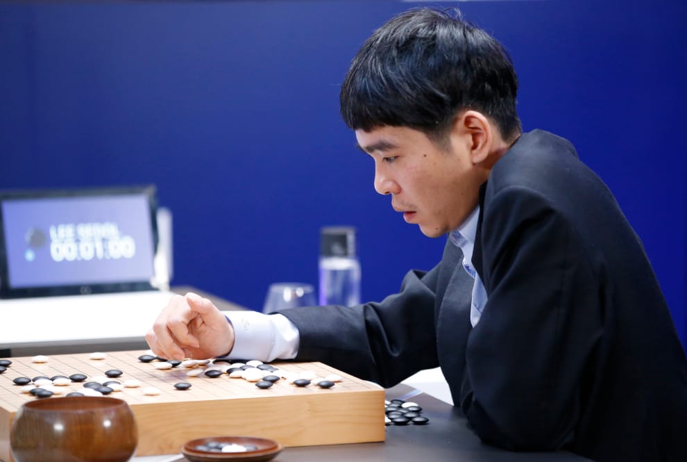 2016年3月12日,南韓棋王李世乭正在和人工智慧系統AlphaGo對弈,在五場對決中,他只贏了一場。