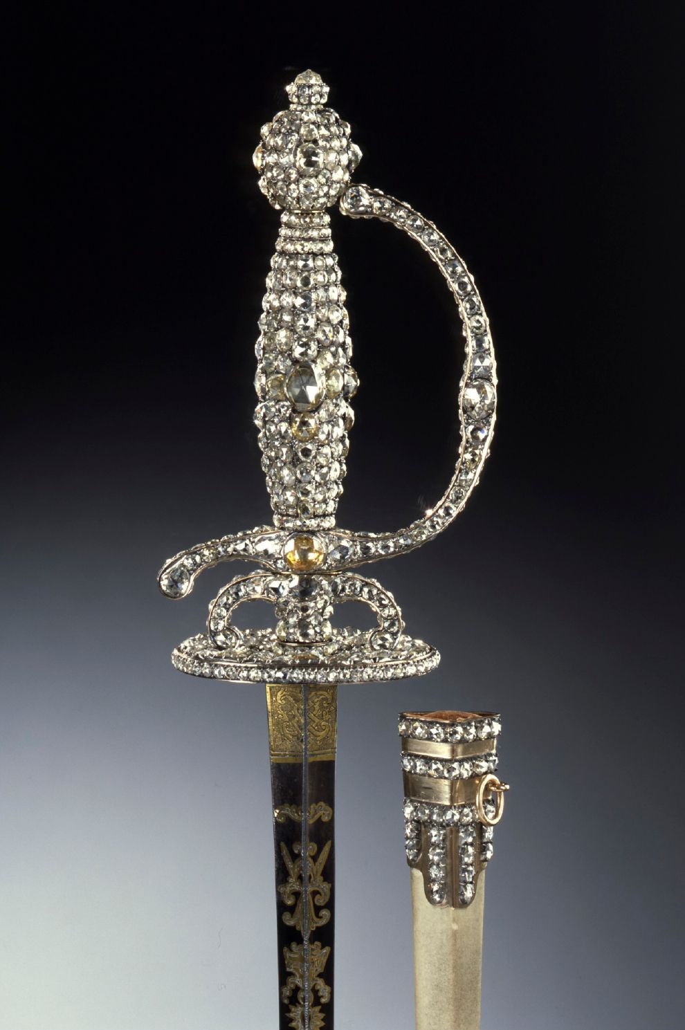 美聯社 / 達志影像圖為於這場珠寶劫案中失竊的鑽石銳劍,其以鑽石組成的玫瑰劍把裝飾聞名,該劍一共鑲有 9顆大鑽石和 770顆小鑽石。