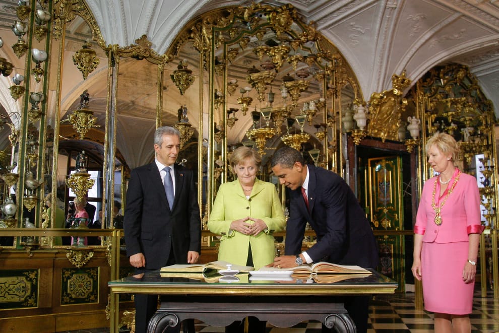 2009年,德國總理梅克爾在綠穹珍寶館招待當時的美國總統歐巴馬。