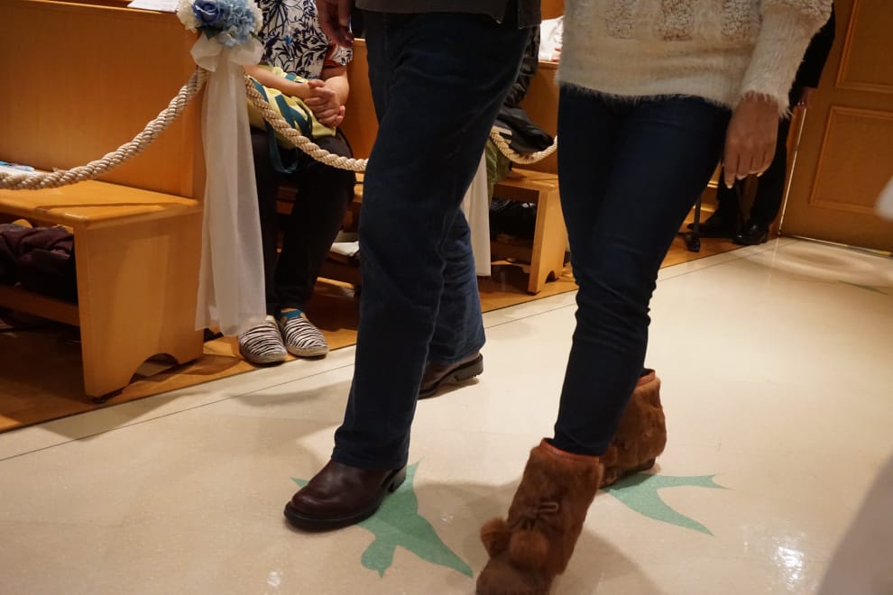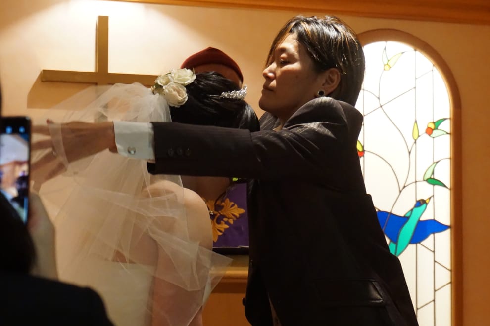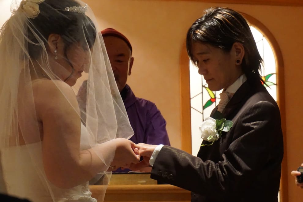 之所以說是「3種宗教共 4種同志婚禮」,是因為當天的活動流程是從基督宗教的婚禮儀式,到扣除基督教色彩(拿掉聖歌、十字架、聖經等各種和宗教有關的連結)但流程上還是西式婚禮風格的「人前式」,日本傳統神道教的「神前式」,以及佛教的「佛前式」。但我沒有想到的是,當天找來當「婚禮主角」的同志伴侶,是真的在舉辦她們自己的婚禮,不是只是來「示範」而已,而且我見證了一場極有可能是日本史上第一次的佛教風同志婚禮現場。