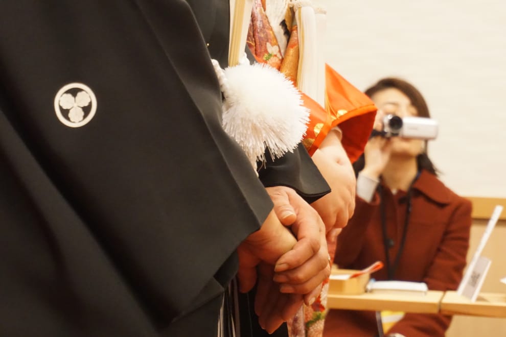 9. 最後由齋主向新人及雙方親友祝賀(斎主祝辞),再按照斎主→新人→友人→親戚的順序退場。