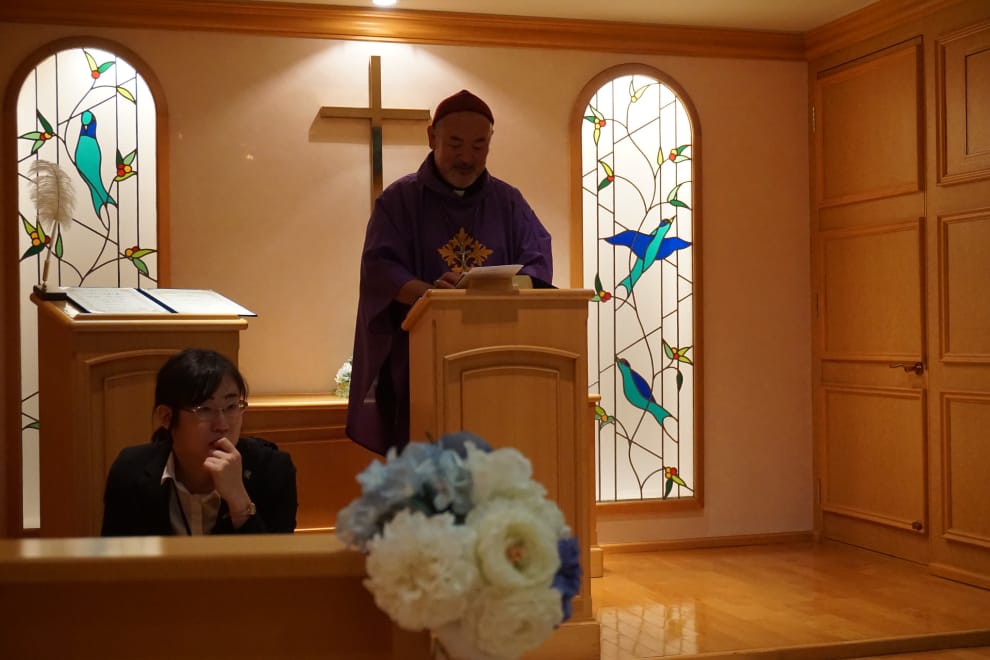 平田小姐的友人席,與失焦的骨灰(佛像旁邊那個銀色袋子)。
