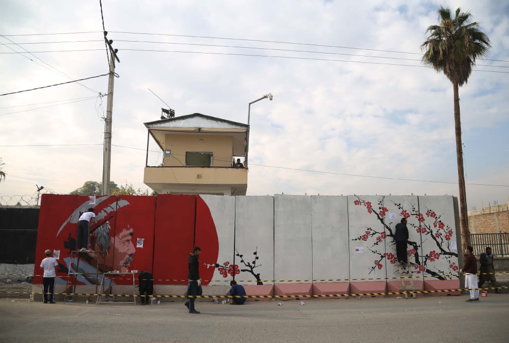 畫在牆上的悼念壁畫,除了中村哲的側臉,也融合了日本櫻花與國旗意象。