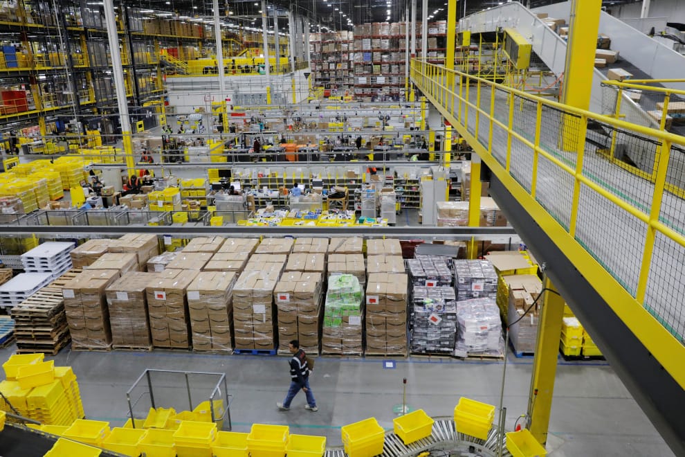 圖為亞馬遜位於美國紐澤西州的羅賓斯維爾鎮(Robbinsville Township)的配送中心,在這裡每天都有成千上萬件商品等著送到消費者的手上。