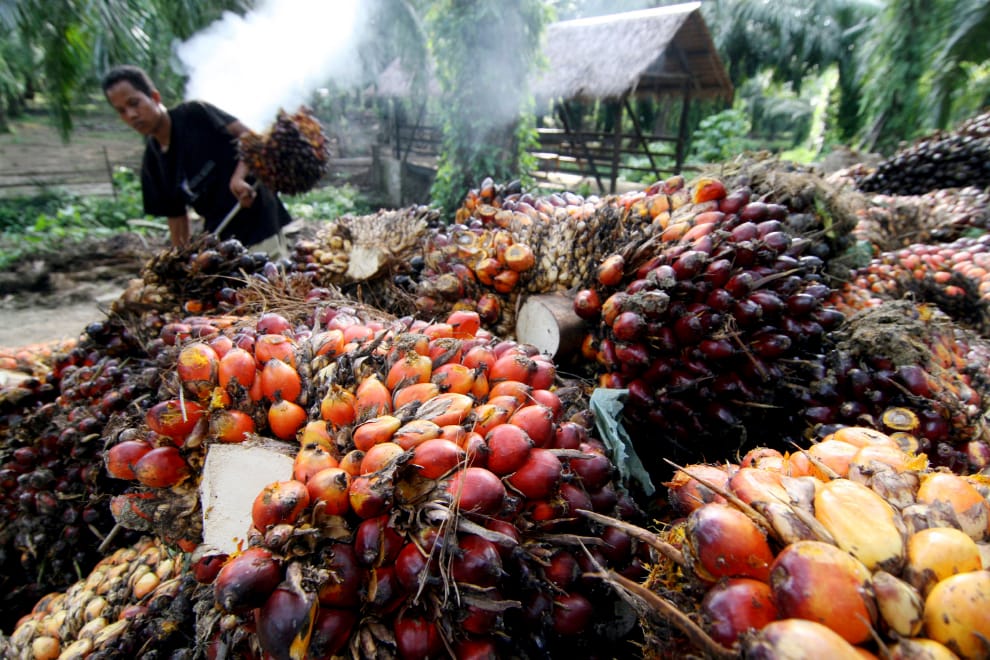 在印尼,一名工人正在處理可以榨出棕梠油的棕梠油果。