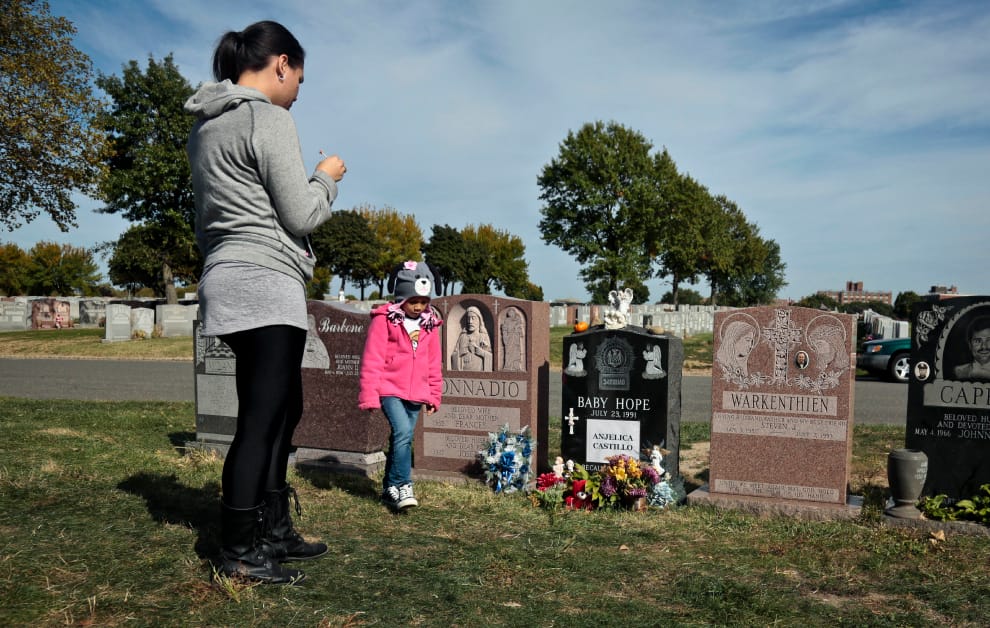 圖中黑色的墓碑就是「希望寶寶」長眠之處,這起案子過了二十年才偵破。