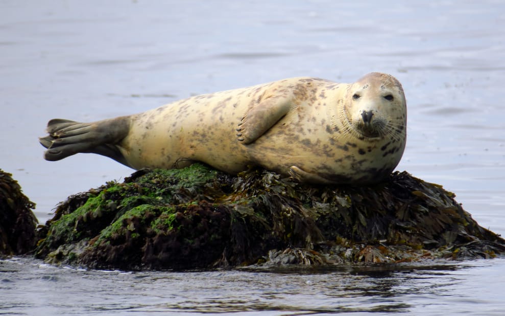 在法國島嶼île aux Moutons附近,躺著一隻看起來很是愜意的海豹。