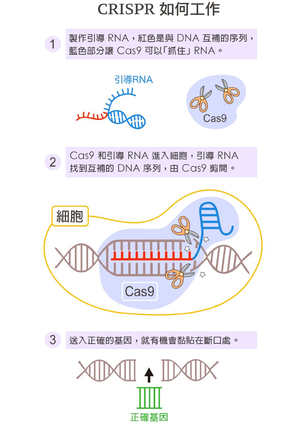 網友圖說設計│黃曉君、林洵安、資料來源│凌嘉鴻所以首先,必須要有一把精準、能夠剪開 DNA 雙螺旋的好剪刀,CRISPR 就是當前最好用的一把。有趣的是,它來自細菌的免疫系統。