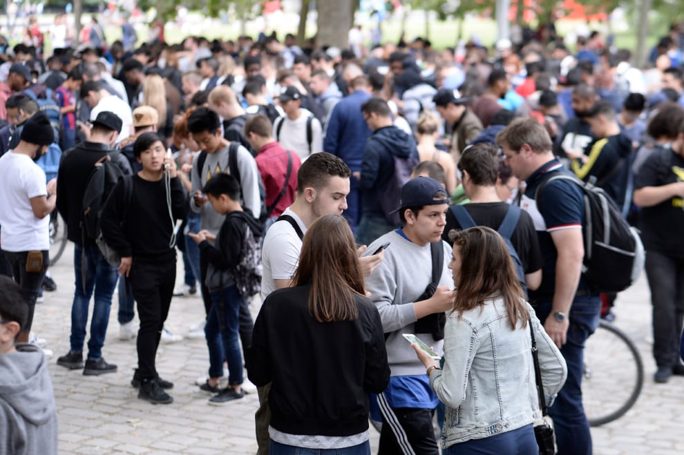 《精靈寶可夢GO》毫無疑問可以引來大量的人潮,圖為玩家齊聚法國巴黎維萊特公園捕捉寶可夢的場景。