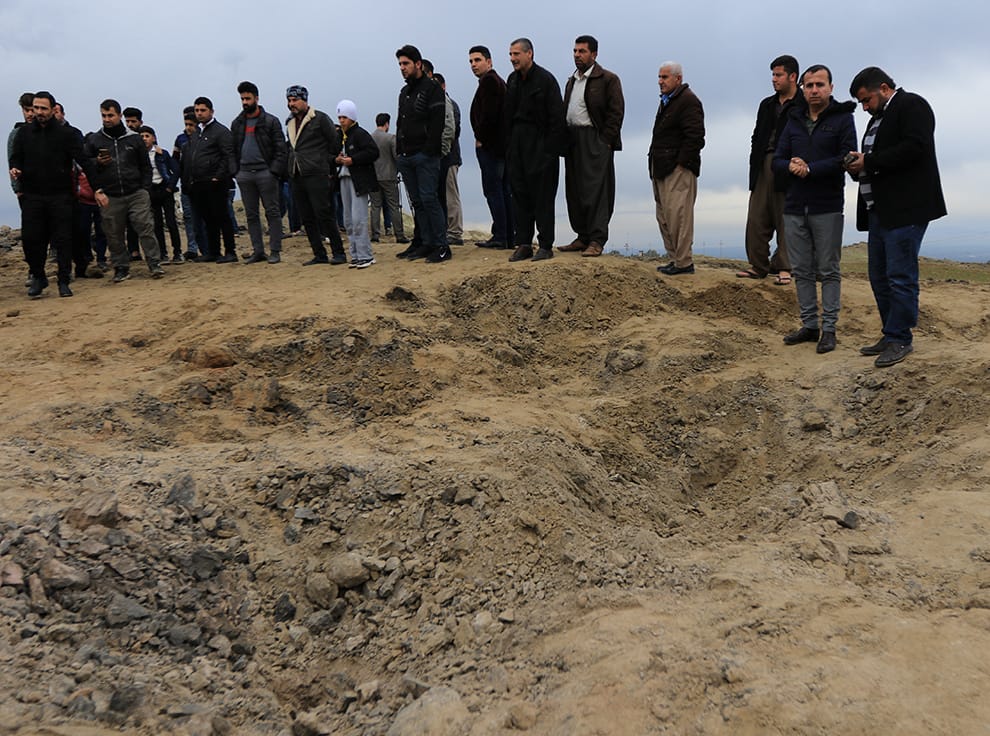 在遭到伊朗飛彈攻擊的伊拉克北部達霍克(Duhok),居民前來看落在當地的飛彈殘骸,以及飛彈掉落後造成的大窟窿。