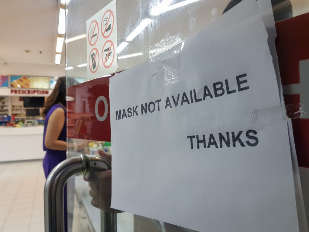 在馬尼拉大都會區,不少原本有賣口罩的商店都貼出「口罩銷售一空」的告示。