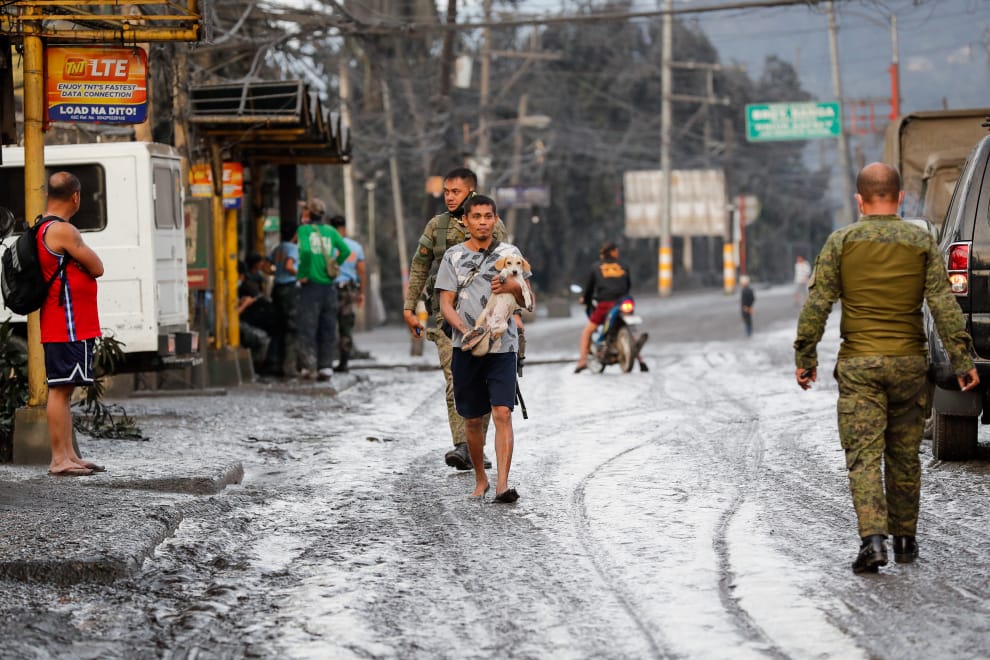 在靠近塔爾火山的村落,地面上都是火山灰造成的泥濘,居民和動物忙著撤離危險區域。