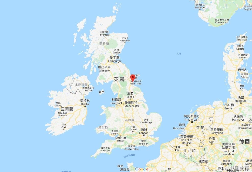 「布萊克霍爾煤礦村」(紅色地標處)位於北海沿岸,這裡過去以開採煤礦維生,目前居民人數少於 5,000人。
