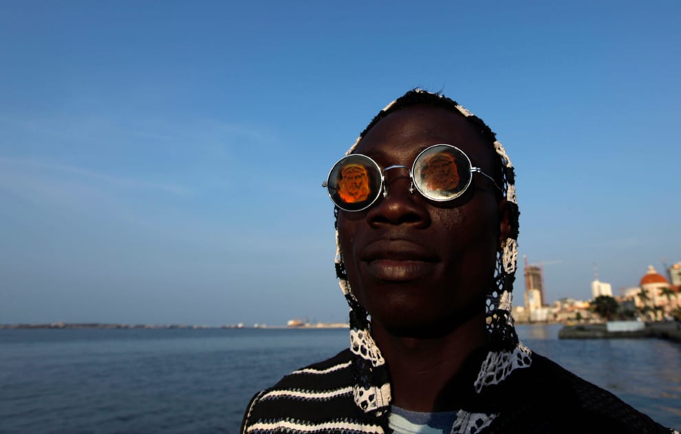 2010年1月,一名青年戴著太陽眼鏡享受安哥拉首都羅安達的海岸風情。
