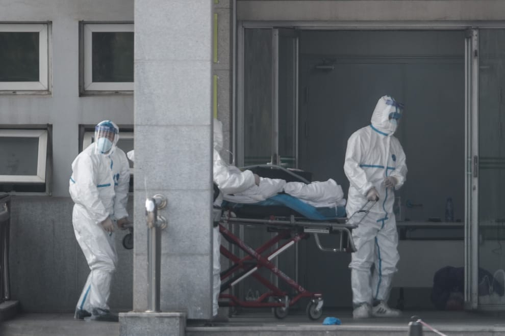 20號這天,中國武漢市防疫人員全副武裝,將感染新型冠狀病毒的患者送往武漢市金銀潭醫院治療。