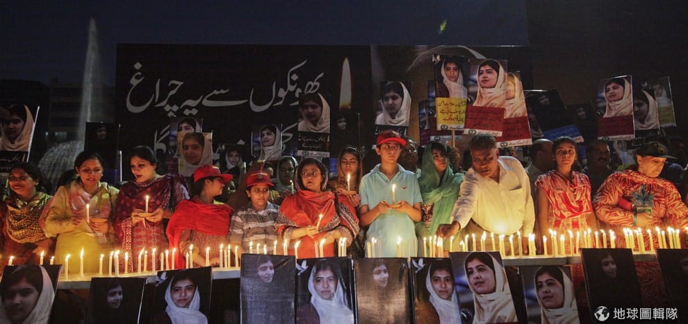 路透社發生槍殺事件後,世界各地都是為她祈福的民眾。照片中是巴基斯坦當地位馬拉拉祈福的民眾。