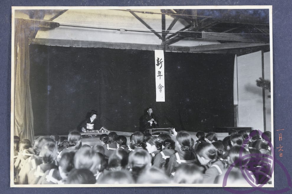 昭和 10 年(1936 年)二高女(今臺南女中)的新年會,學校是日本政府規訓同化的重點場域,透過各種活動、儀式讓學生接受「新曆年」。