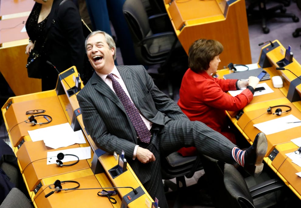 然而,在全場哀戚的氣氛中,推動脫歐不遺餘力的英國歐洲議會議員法拉吉(Nigel Farage)格外開心,他說:「(英國脫歐後,)再也不用拿錢給歐盟,再也不受歐洲法院的管轄,再也不用遵守歐盟共同的漁業政策,再也不用被輕視,再也不用被霸凌。」