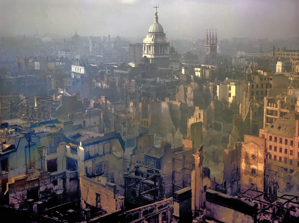 在戰爭爆發時,英國政府擔心空襲會帶來嚴重死傷。圖為倫敦大轟炸歷史上色照片。