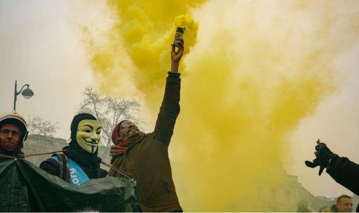 以2018年11月17日爆發的黃背心運動(法語:Mouvement des gilets jaunes)為例,一開始馬克宏想要針對全球氣候變遷做些事情,於是提高汽車燃料稅,希望鼓勵民眾改購買電動車等更有利於環境的交通工具,但因國際油價上漲,中產階級民眾感覺購買力受到衝擊,加上先前馬克宏反對復徵富人稅,於是本來是環保議題的汽車燃料稅,變成是窮人與富人的階級戰爭。
