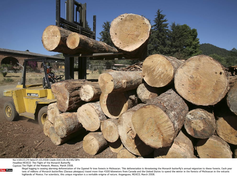 2008年,墨西哥當局在米卻肯州安岡歐自治市(Angangueo)查獲一批盜伐的木材。
