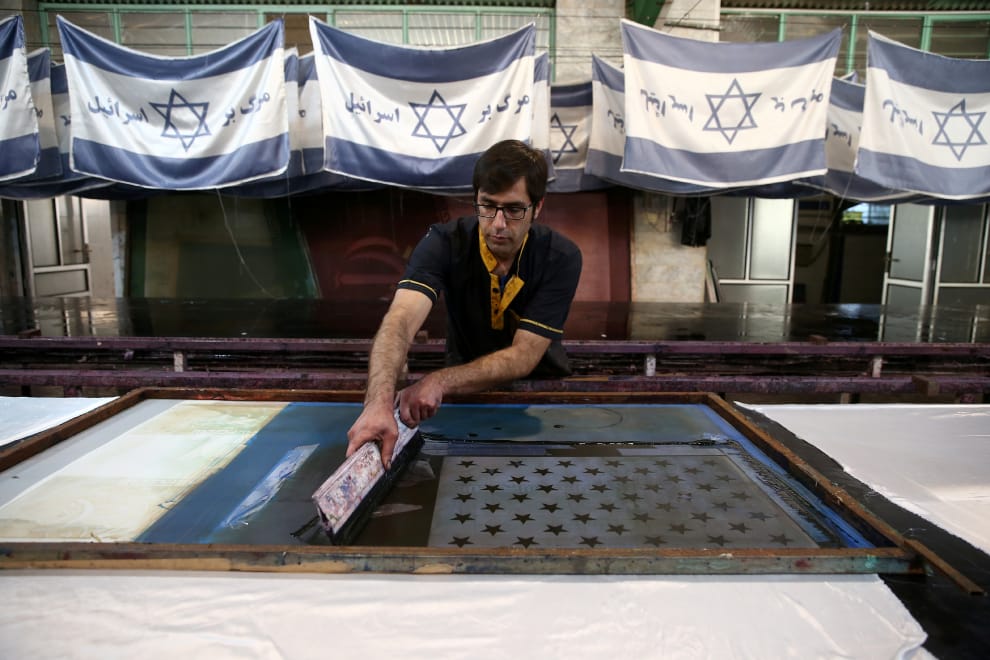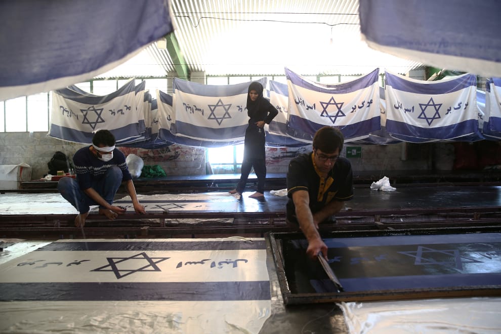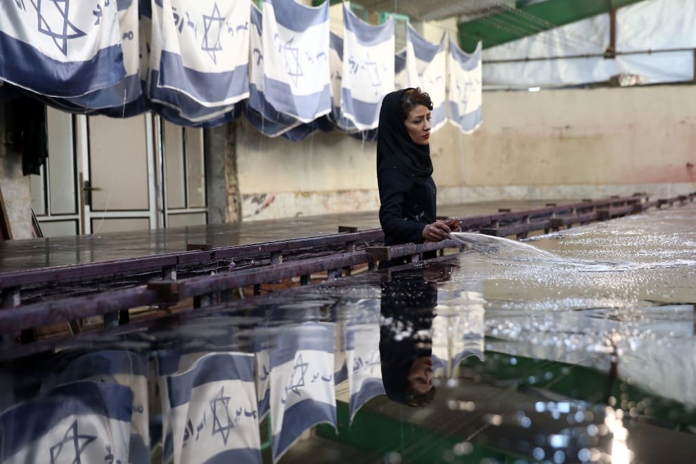 路透社 / 達志影像除了美國國旗,這間伊朗國旗工廠還有製作以色列國旗。