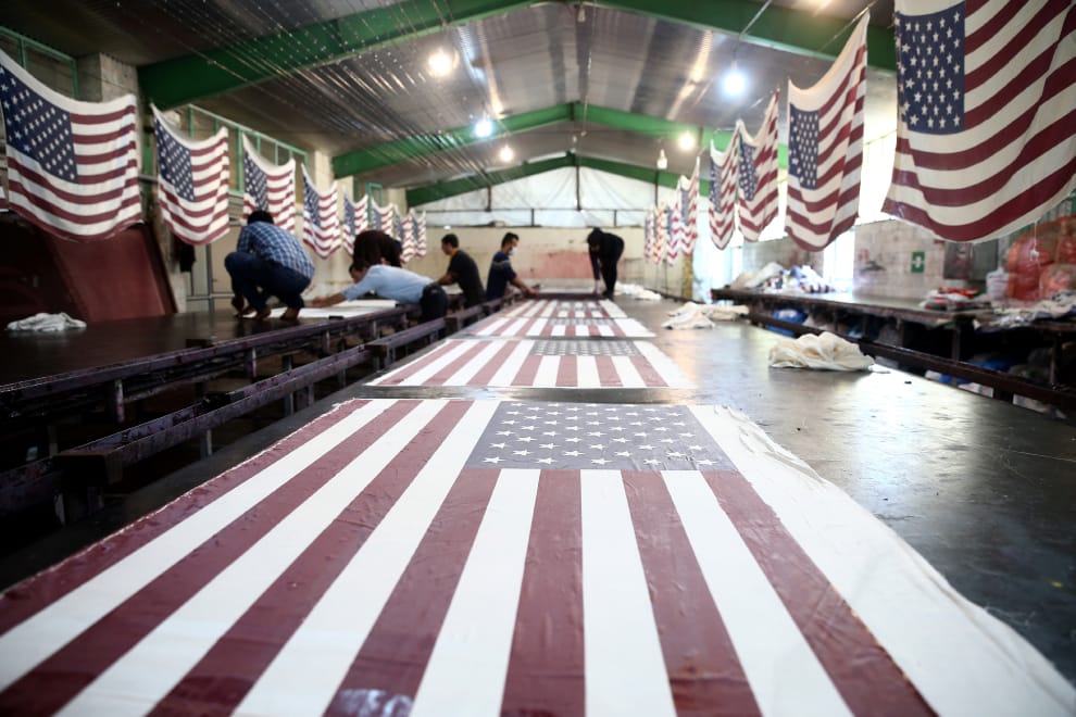 在霍梅恩市的國旗工廠內,可以看到一面面的美國國旗。