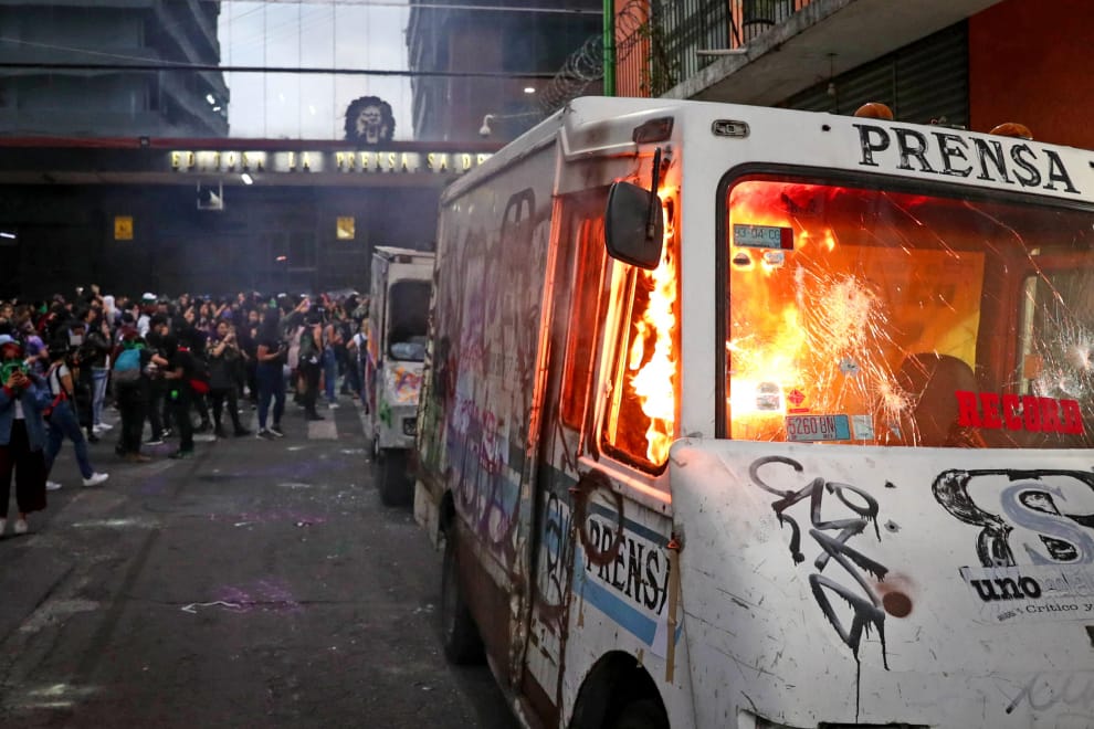 離開總統府後,示威群眾到了其中一家刊載遺體照片的媒體前,縱火燒毀了一輛工作車。