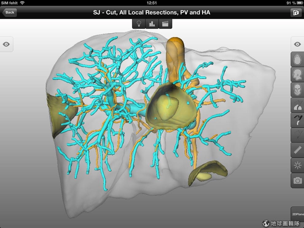 患者的肝臟和腫瘤等數據資料在開刀前會先輸入到平板電腦中,在「探索肝臟軟體」(Mobile Liver Explorer)軟體的幫助下,平板電腦螢幕上會用虛擬實境的方式,可以模擬患者資料重建出肝臟畫面,並顯示腫瘤還有周邊的組織結構。