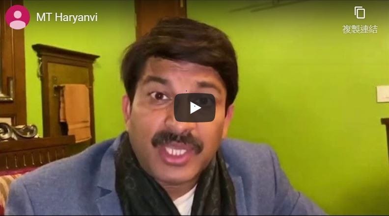 德里議員選舉前一天,人民黨德里主席Manoj Tiwari使用「哈里亞納語」發布的影片
