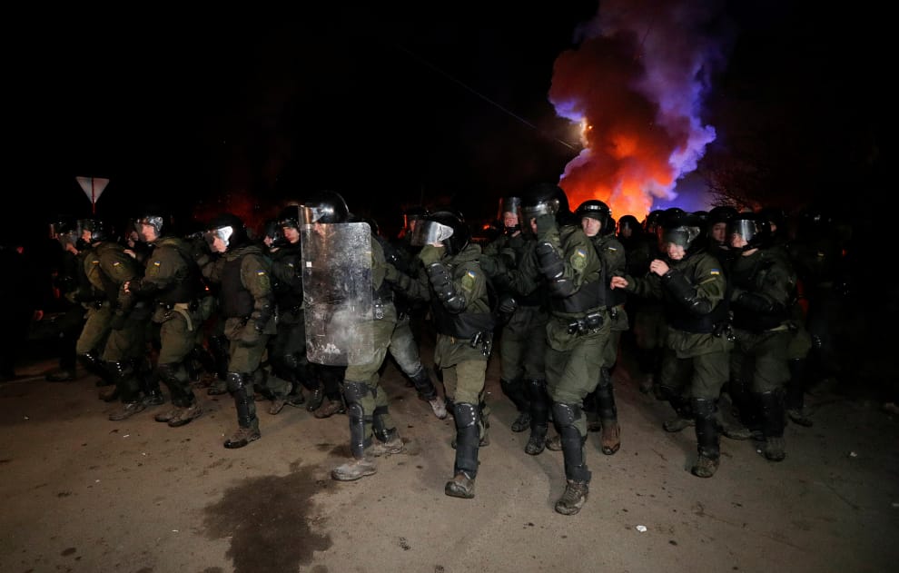 上周四(20)晚間,45名烏克蘭人和 27名外國公民順利自中國撤離。載著他們前往位在新桑札里(Novi Sanzhary)鎮隔離所的遊覽車才開到一半,突然被一群憤怒的群眾包圍。外頭群眾的呼喊聲、刺眼的火光、不時飛來落在遊覽車窗上的石塊,讓新桑札里鎮的夜晚顯得特別不平靜。