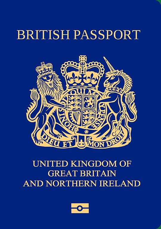 左側為現行的英國酒紅色護照;右圖為脫歐後英國將採用的藍護照。左側酒紅色護照上方仍有「EUROPEAN UNION」字樣,從 2019年3月後的酒紅色護照因為原本庫存用完,改發行上方沒有「EUROPEAN UNION」字樣的版本。