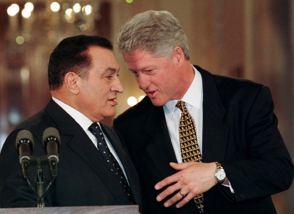 穆巴拉克和美國的關係良好,在他的統治下,埃及成為美國位於中東區域的主要盟友。圖為穆巴拉克和時任美國總統的柯林頓(Bill Clinton)。