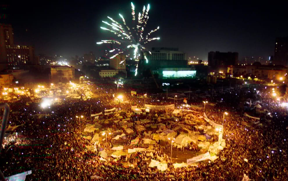 2011年2月11日,在確認穆巴拉克下台的消息後,位於開羅的解放廣場放起了煙火,成千上萬名民眾齊聚一堂慶祝。