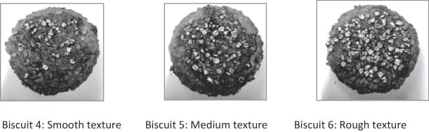 這6種造型可區分為「光滑表面」與「粗糙表面」2類型,各類型各有3種質地的級距。研究找來了88名受試者,並要求他們在不能吃、不可觸碰的情況下,僅根據燕麥餅乾的視覺外觀,來對該餅乾的健康性、美味、鬆脆度、耐嚼度進行評分,並進一步評估自己的購買意願。