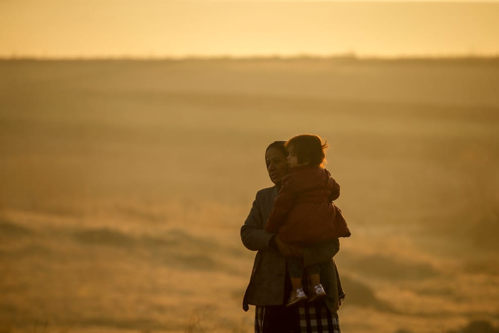 一名婦人抱著孩子等待著通過土耳其邊境附近的馬里薩河(Maritsa river)。對國家而言,難民們是交換利益的一張牌;對個別難民而言,他們想要的只是可以餵飽家人的穩定生活環境。