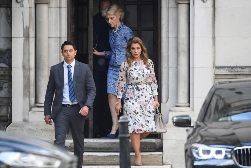 2019年7月31日,哈雅公主和律師們步出英國倫敦高等法院。