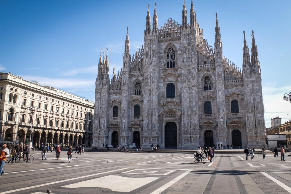 因為封城令的關係,向來充滿觀光客的米蘭大教堂前門可羅雀。