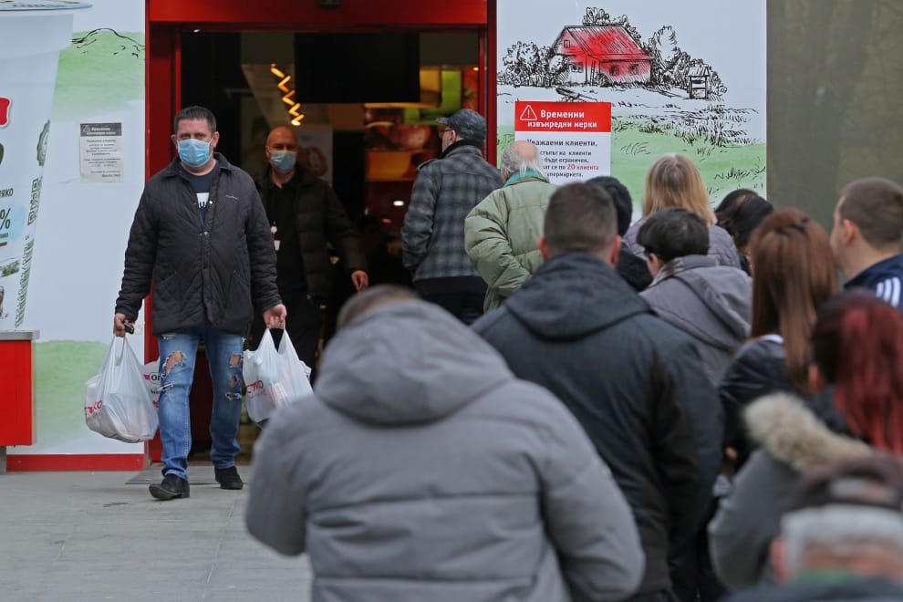 14號在保加利亞首都索菲亞(Sofia),出現了等著要進超市買東西的排隊人潮。
