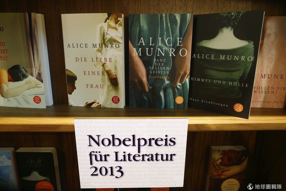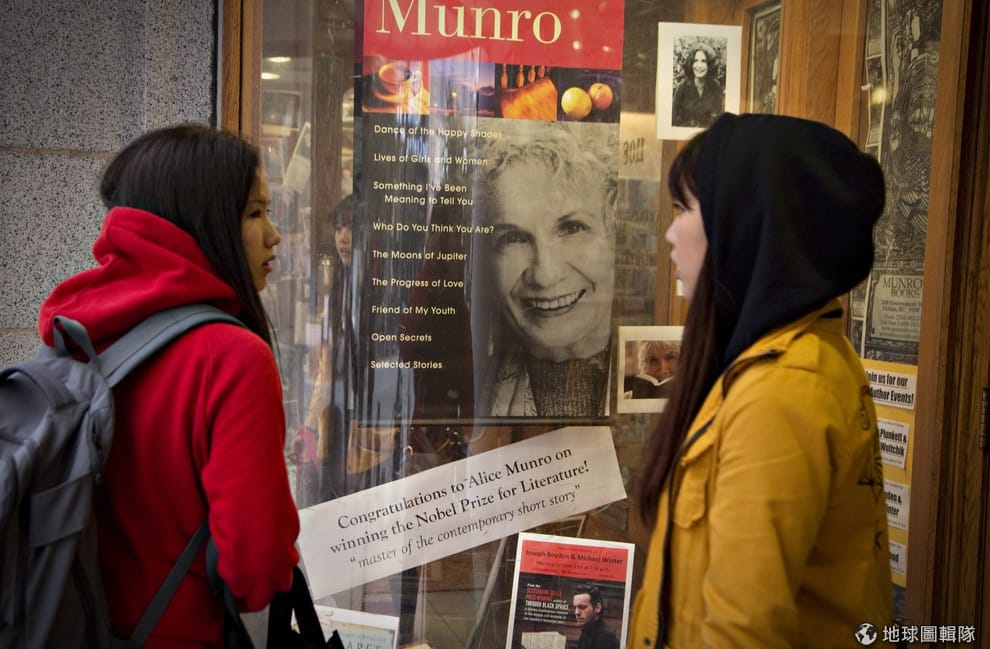 諾貝爾文學獎發表後,書店很迅速地把得獎人Munro的書放到顯目區域。