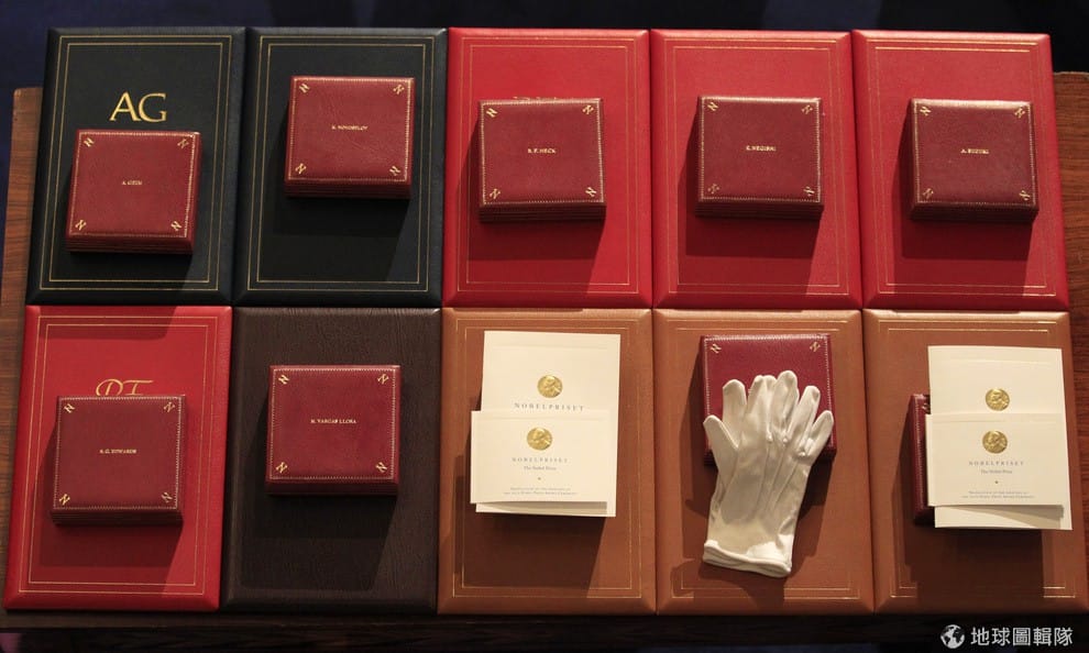 等待得獎人的諾貝爾獎章被放置在桌上。
