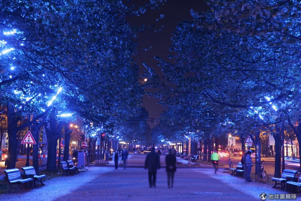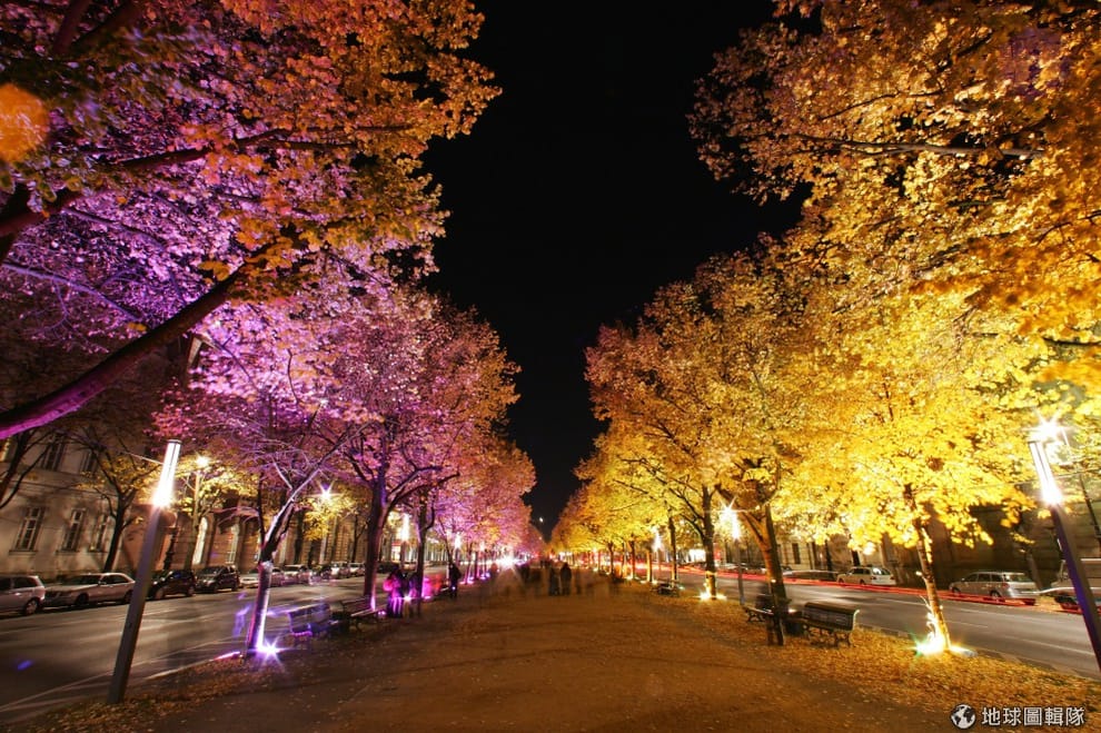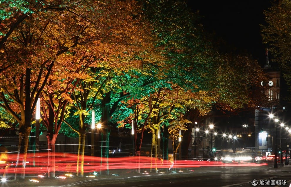 德國著名的「菩提樹大道」(Unter den Linden,因為道路兩旁種滿菩提樹故有此別稱)被燈光點亮,呈現不同於白天的氣氛!圖片來源:Andreas Rentz/Getty Images