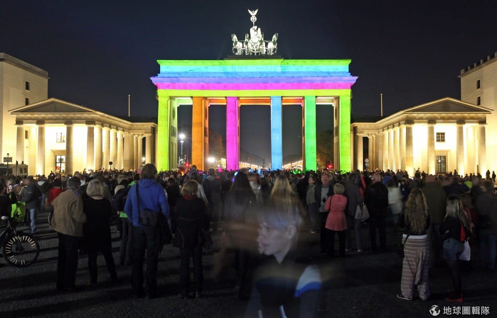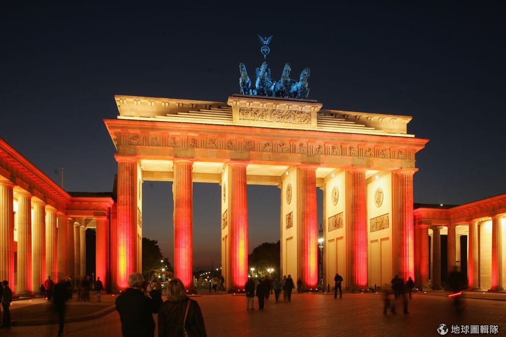 當地的「布蘭登堡門」前面廣場擠滿觀賞燈光秀的遊客!圖片來源:Adam Berry/Getty Images