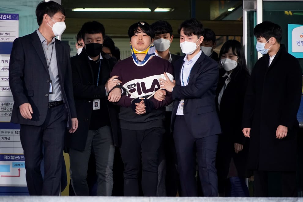 圖為南韓Telegram「N號房」事件主嫌趙周彬,他在今天上午離開首爾警察局,被移送到首爾檢察官辦公室。