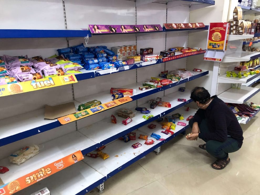 印度爆發囤貨搶購朝,超市一片狼籍。照片提供/印度尤