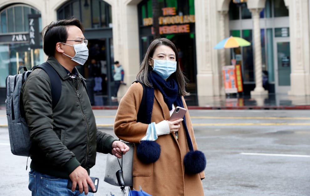圖為兩名華人戴著口罩,經過美國洛杉磯著名的TCL中國劇院。當年在舊金山鼠疫開始蔓延的時候,舊金山政府宣布封鎖中國城,甚至要求「白人在城外,中國人留在城內」。