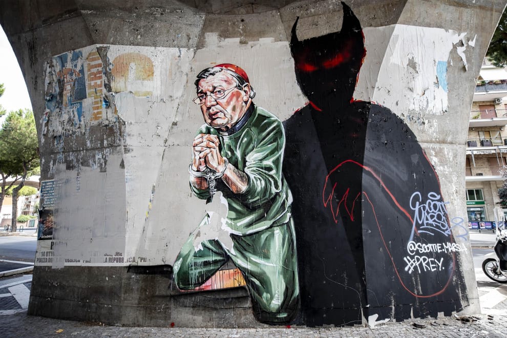 2019年8月,一幅佩爾被銬上手銬的壁畫,出現在羅馬街頭。與佩爾相關的猥褻案不只一件,近年來陸續有聲稱遭佩爾不當碰觸者出面指控佩爾。