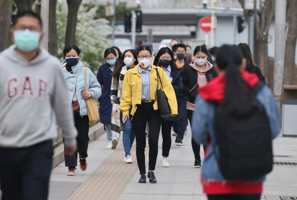 武漢解禁後,人們再度出現在人行道上。